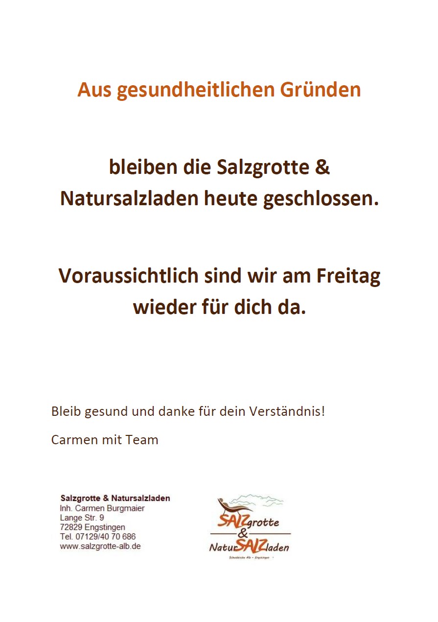 Ruf uns an: 0 71 29/40 70 686 | Schreibe uns über Instagram, Whatsapp oder per E-Mail info@salzgrotte-alb.de